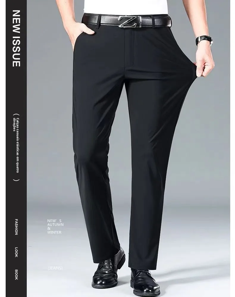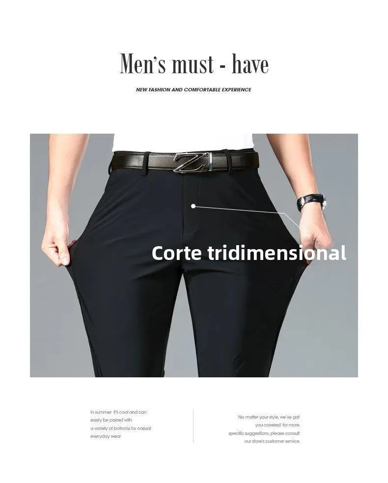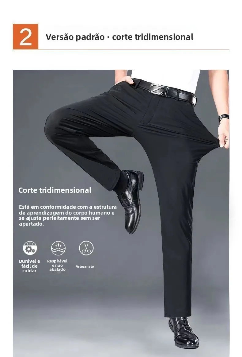 O tratamento sem ferro das calças garante que você esteja sempre pronto para o trabalho, sem a necessidade de passar.