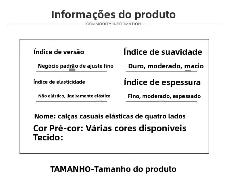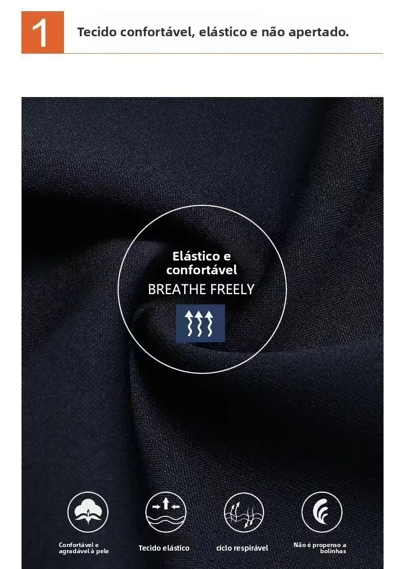 Estas calças masculinas apresentam alta elasticidade, permitindo um ajuste confortável e livre de restrições durante todo o dia.