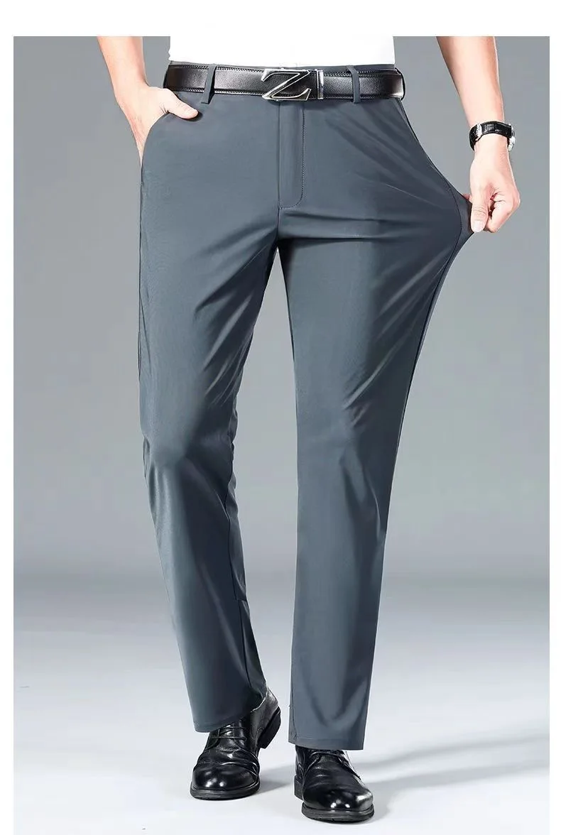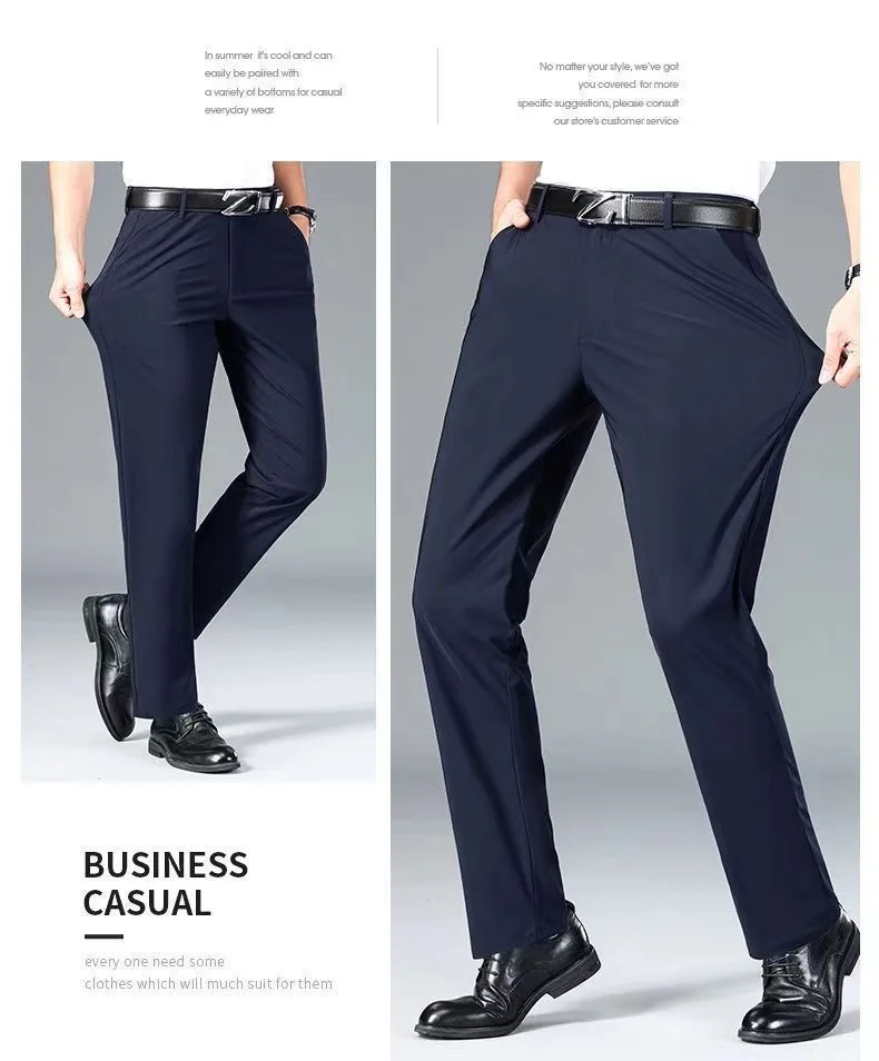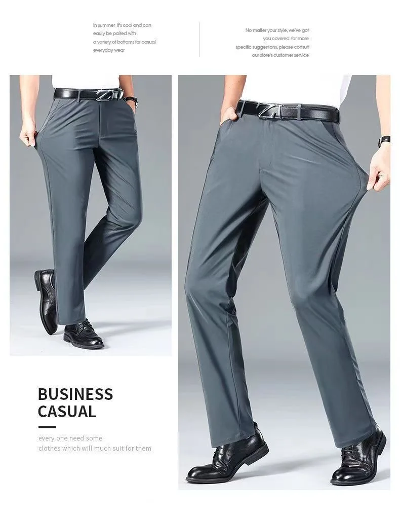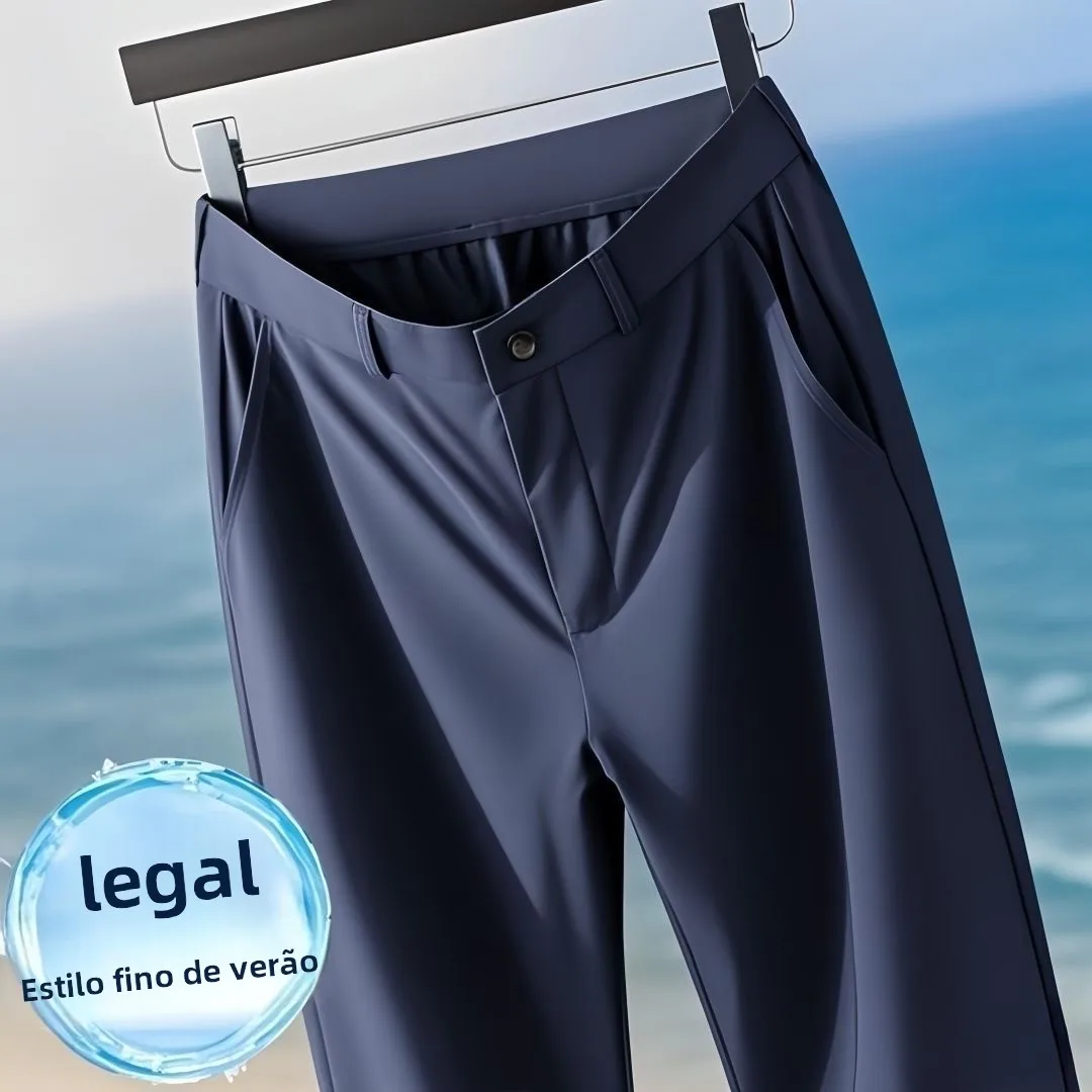 Feitas de tecido de seda de gelo, estas calças são leves e frescas, ideais para o verão.