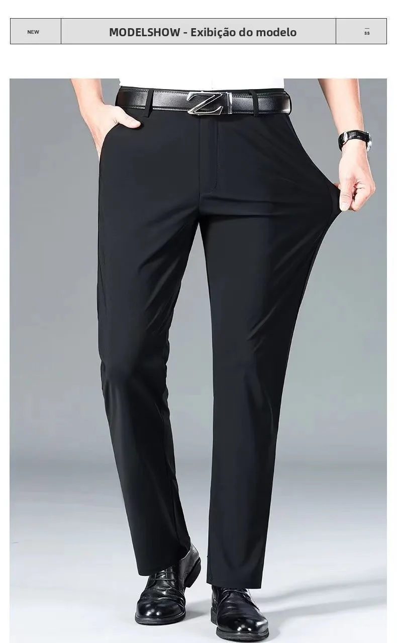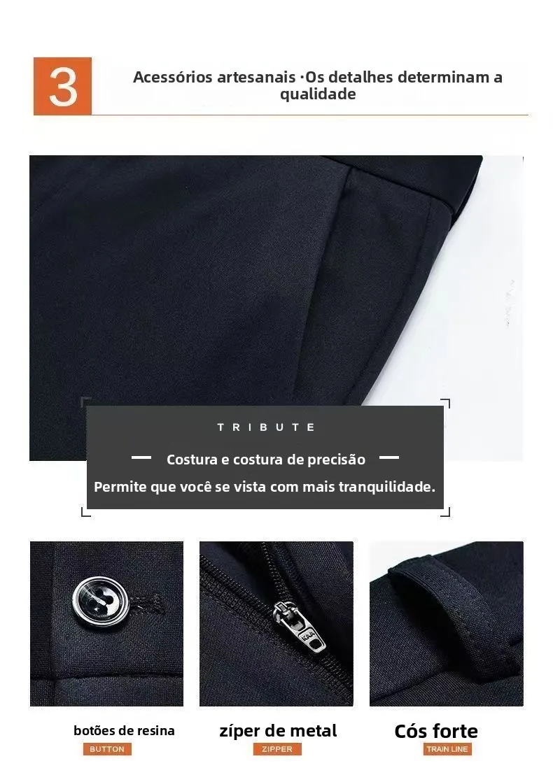O design de largura direta das calças proporciona um visual elegante e moderno, adequado para qualquer ocasião formal ou casual.